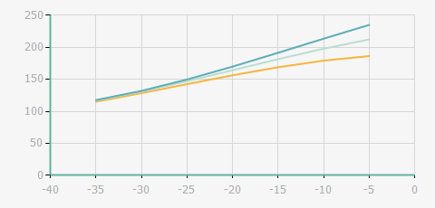 | 蒸發(fā)溫度 | 制冷量+/-5% | 能耗+/-5% | 現(xiàn)在能效+/-5% | 氣體流速+/-5% | 能效+/-7% | ||||